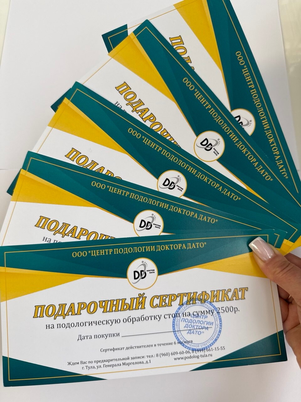 Сертификат от нашего "Центра подологии ДОКТОРА ДАТО "